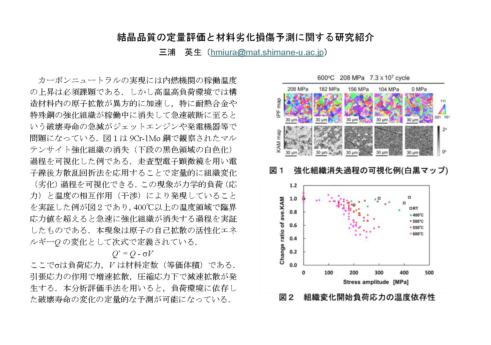 1.結晶品質の定量評価と材料劣化損傷予測に関する研究紹介 三浦 英生機構長