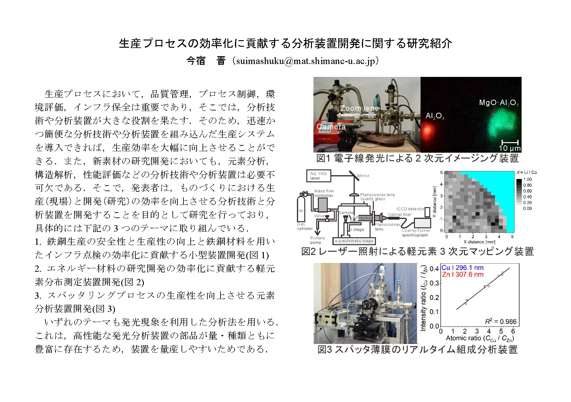2.生産プロセスの効率化に貢献する分析装置開発に関する研究紹介 今宿 晋教授