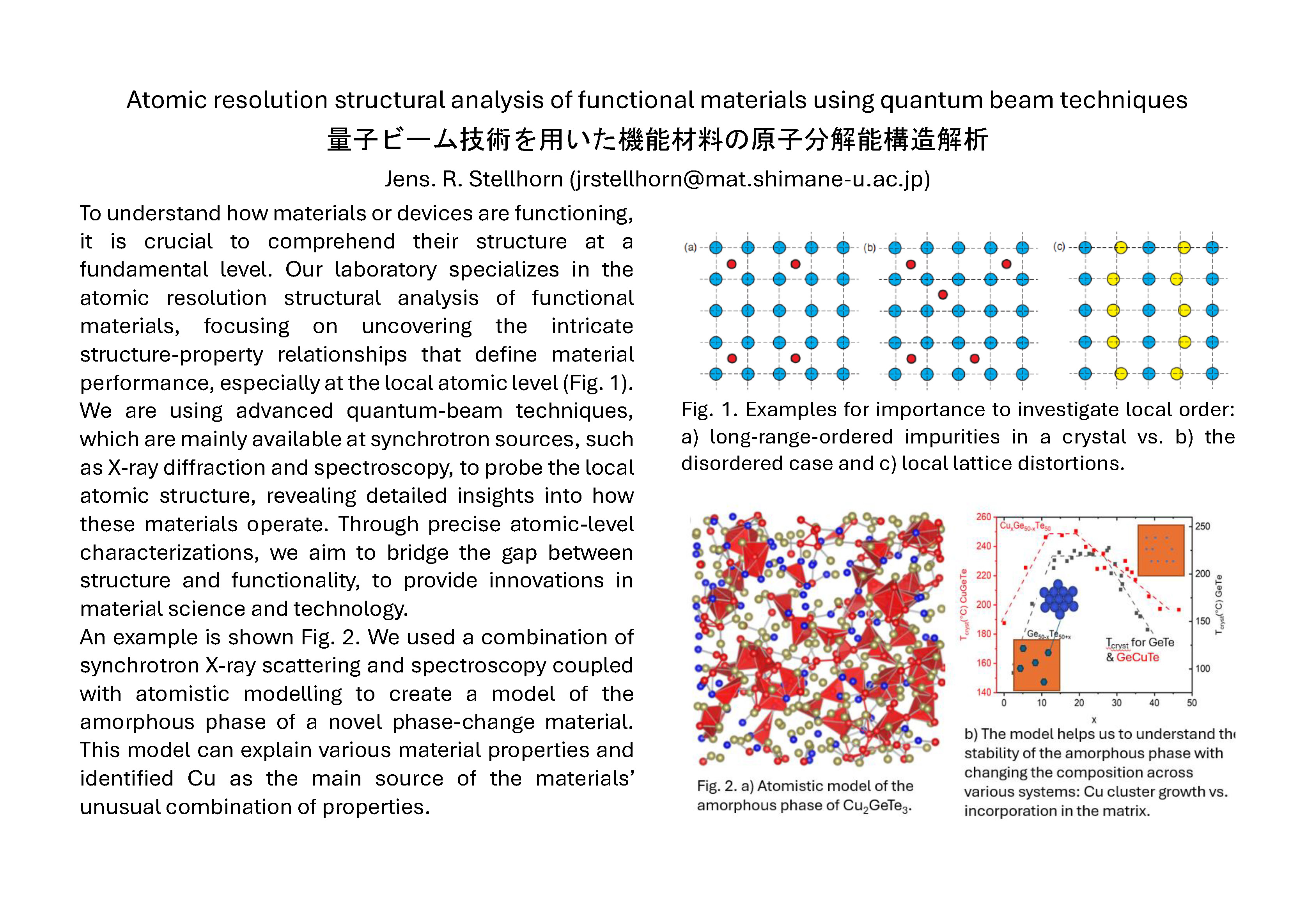 3.量子ビーム技術を用いた機能材料の原子分解能構造解析 Jens Rüediger Stellhorn講師
