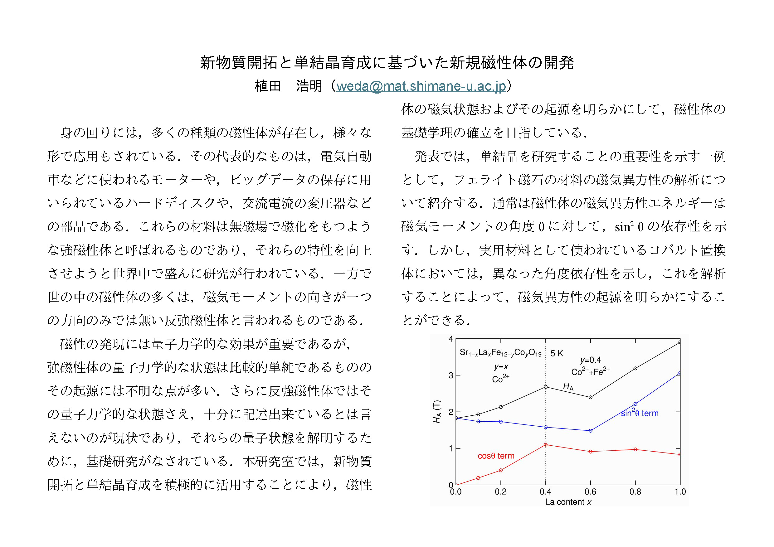 5.新物質開拓と単結晶育成に基づいた新規磁性体の開発 植田 浩明教授